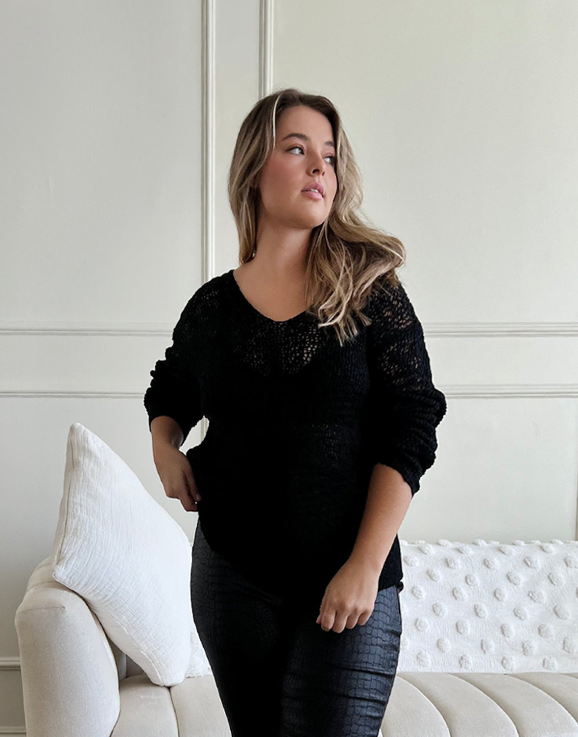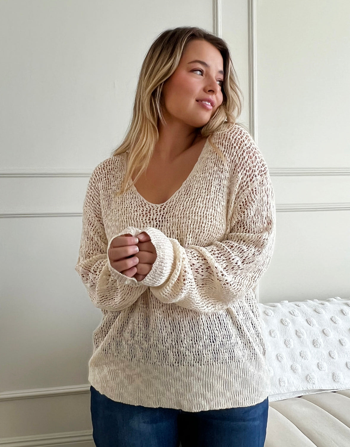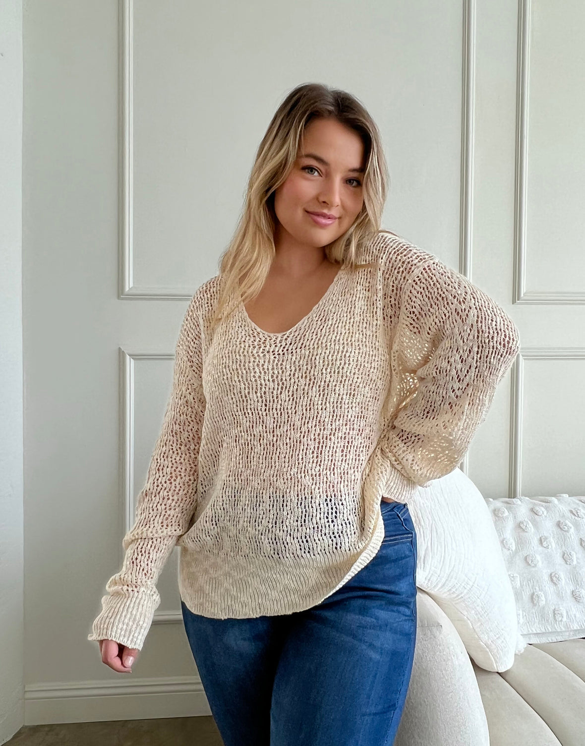 Plus Size Airy Crochet Sweater