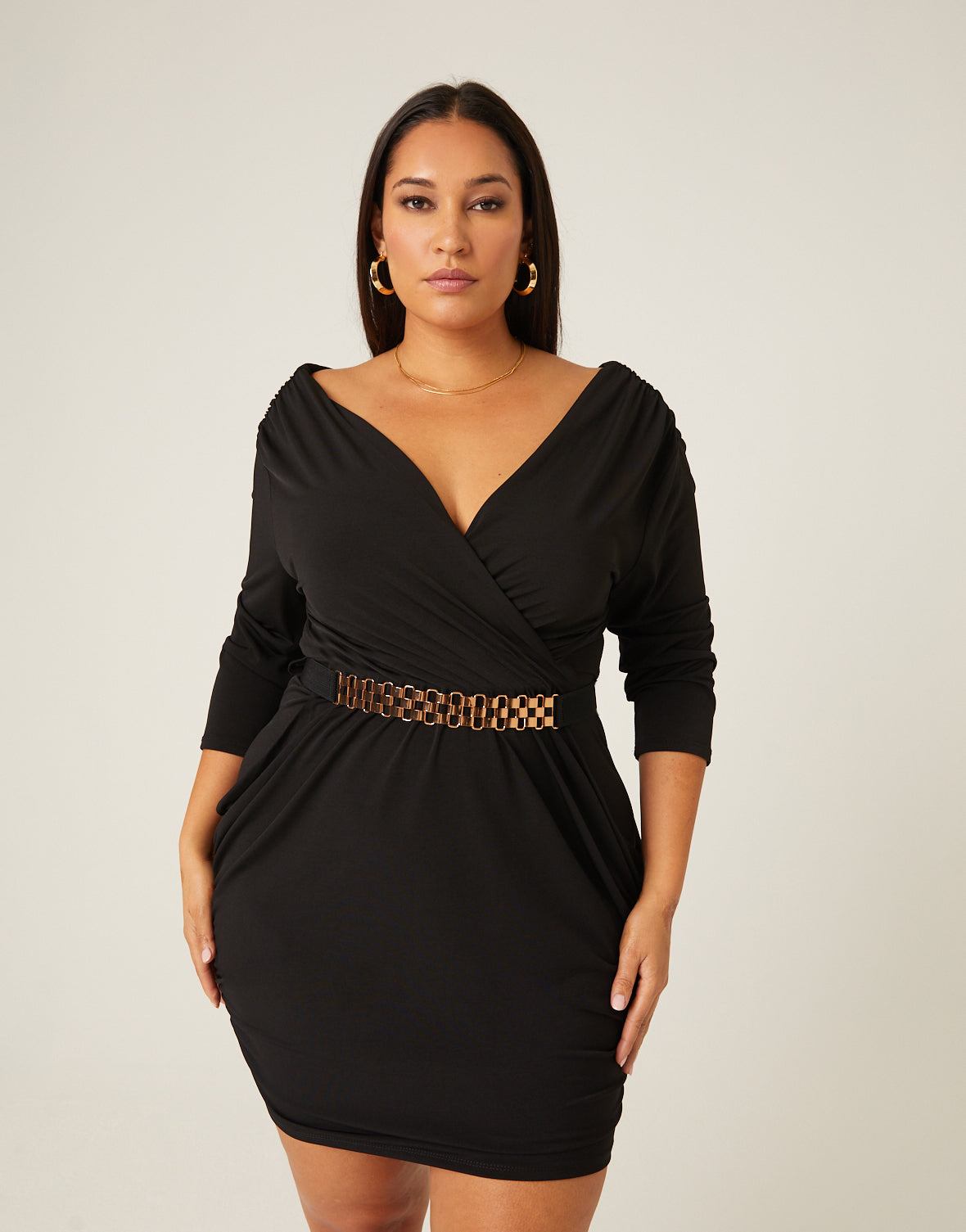 Plus Size Belted Ruched Dress