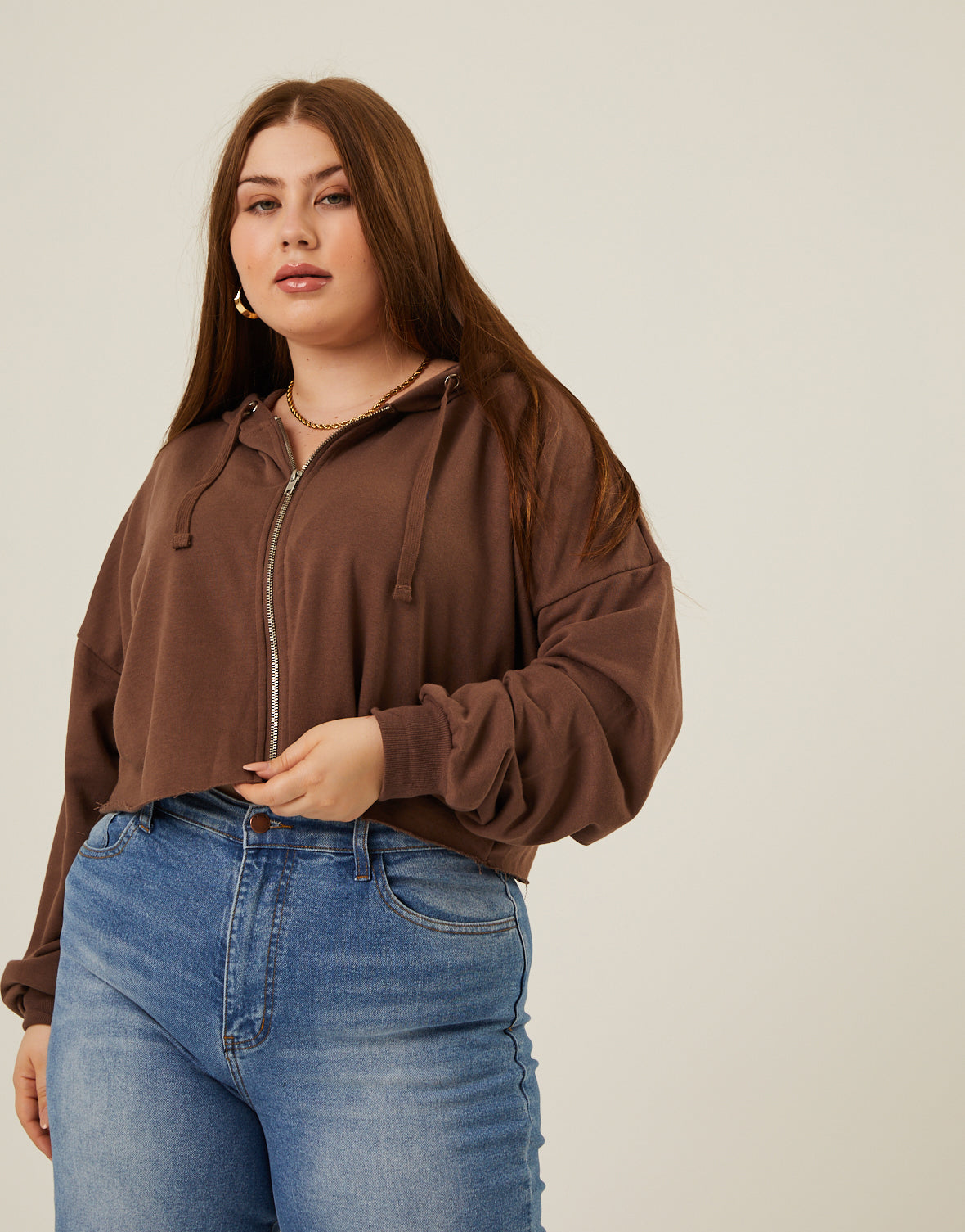 - This jacket features a?zipper up the front, a cropped silhouette, full-length sleeves, and a hood with a drawstring.
