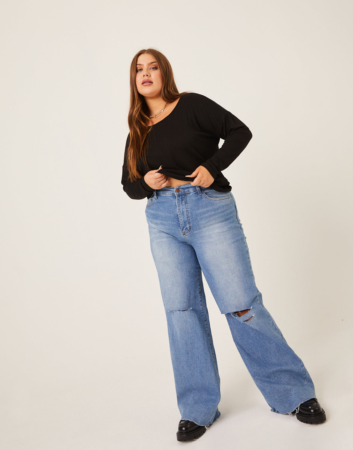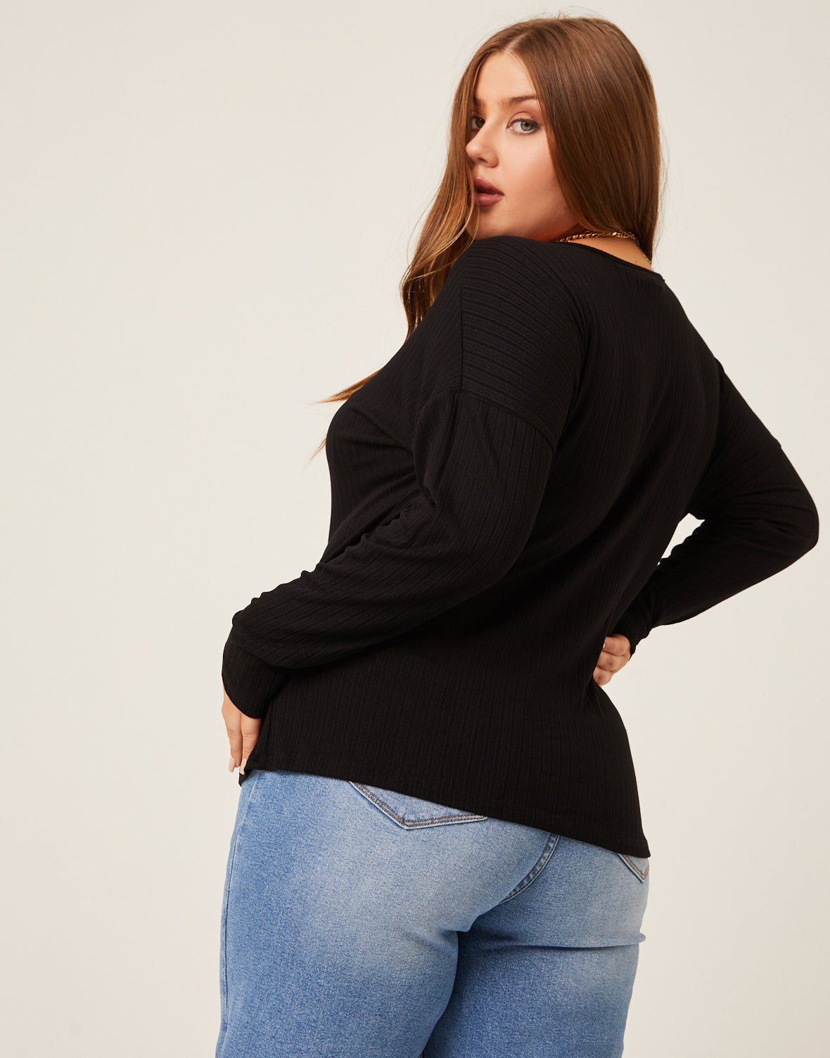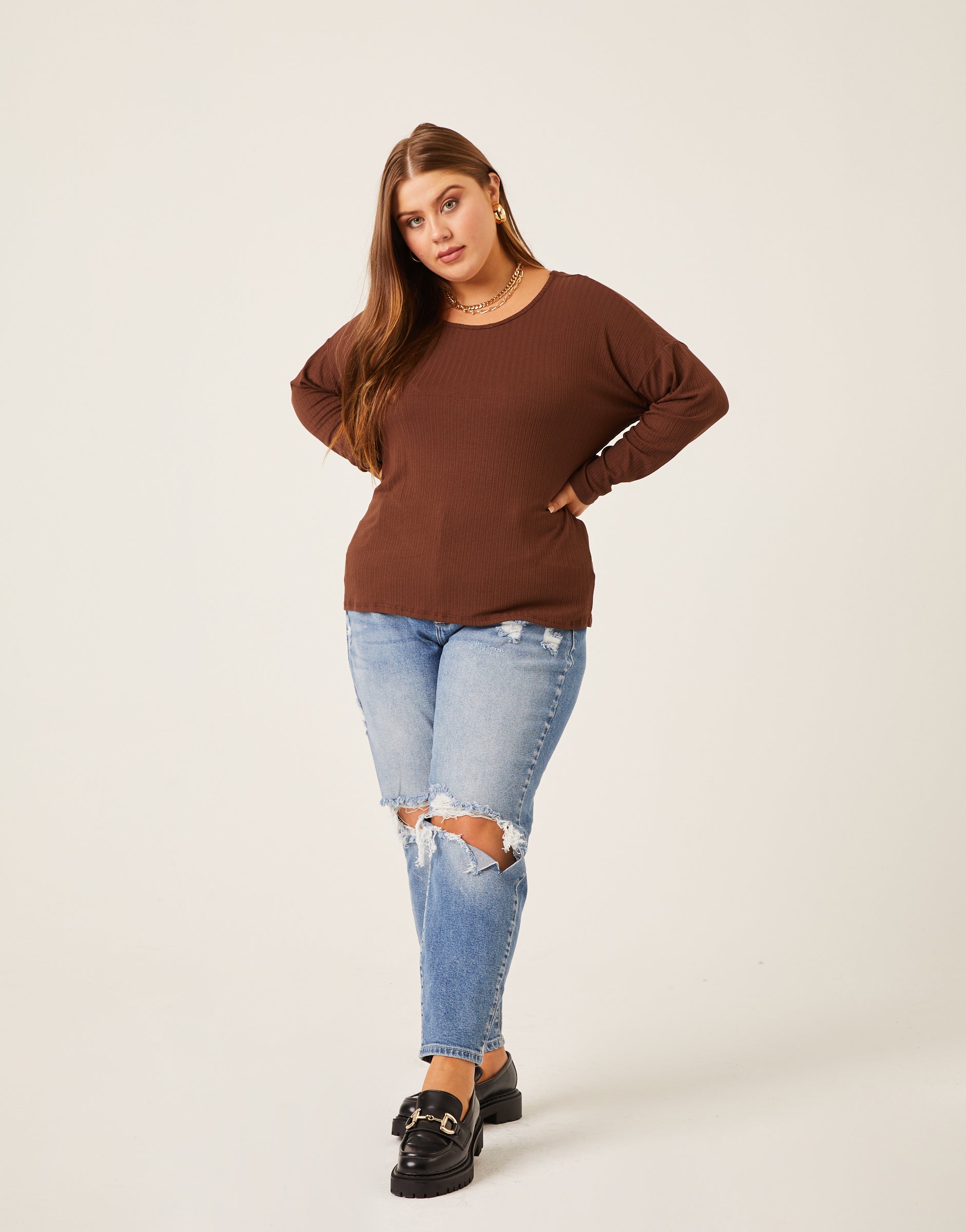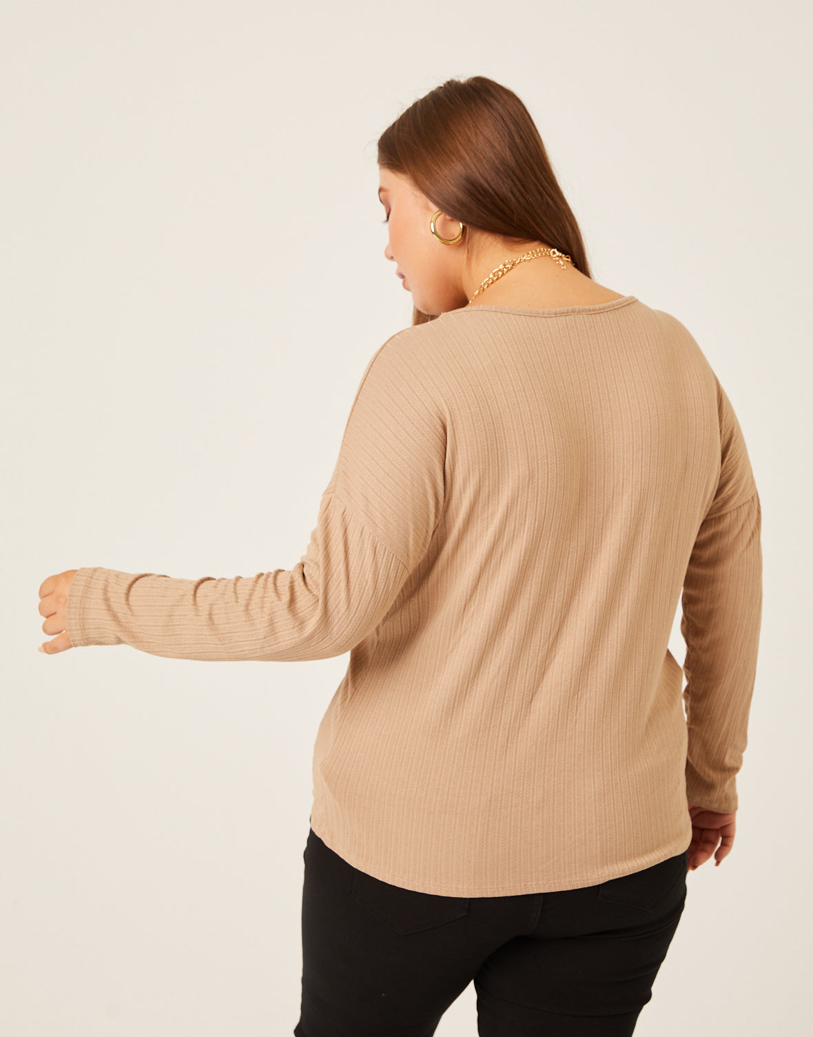 The super comfortable?Curve Rib Knit Long Sleeve Top is exactly what you want, need, and expect from a comfy shirt.