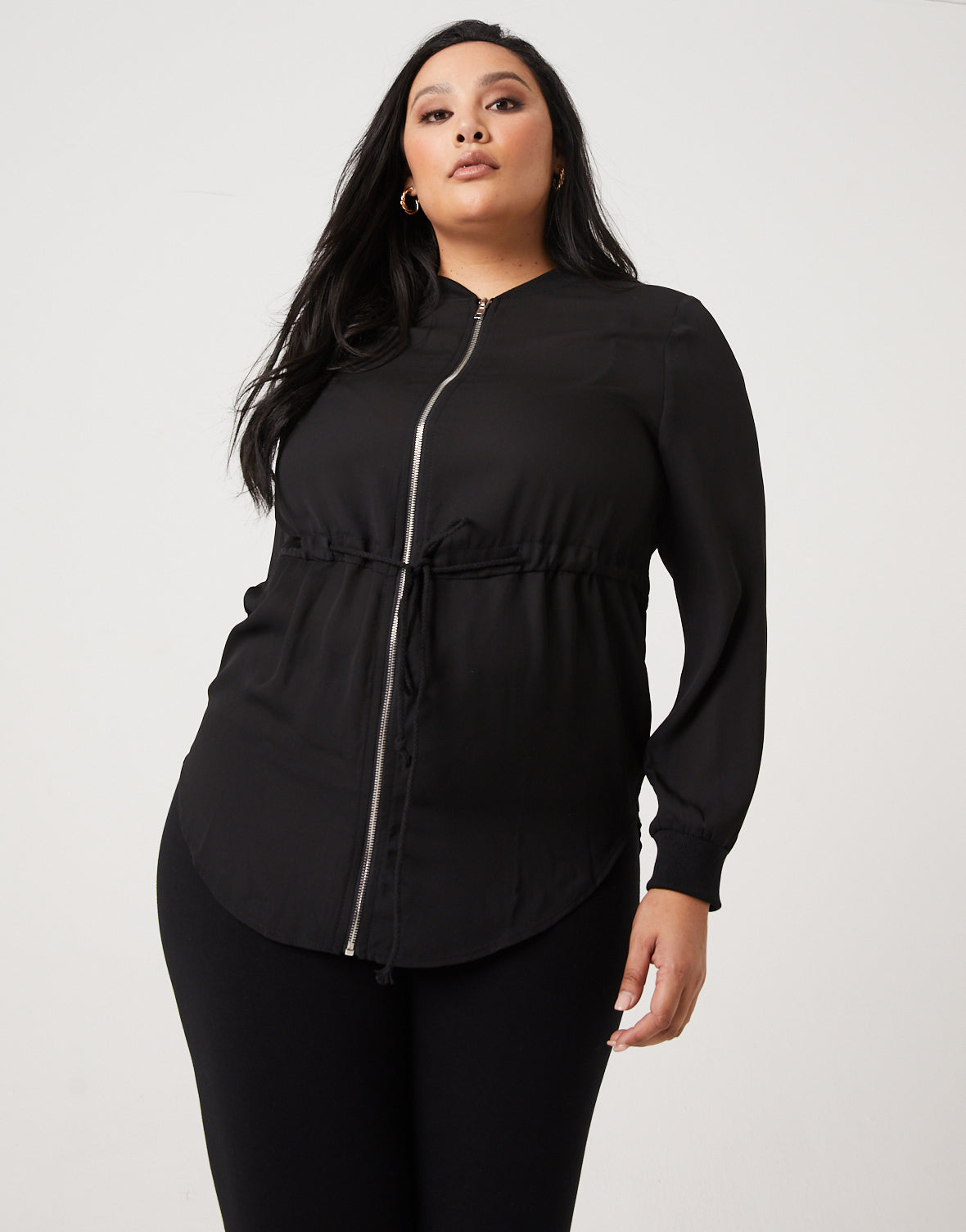 - This mesh, zip-up jacket is meant more as a?statement piece than a warm layer,?zips up the front, and has an adjustable drawstring at the waist.
