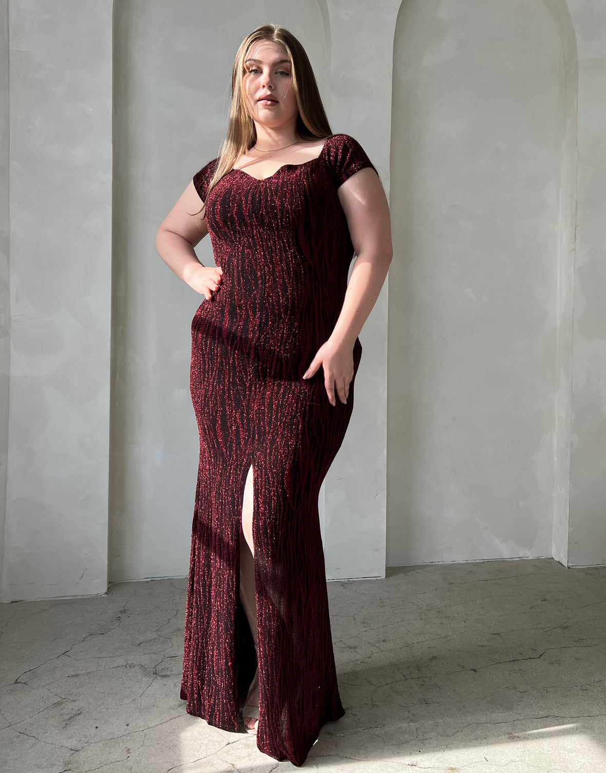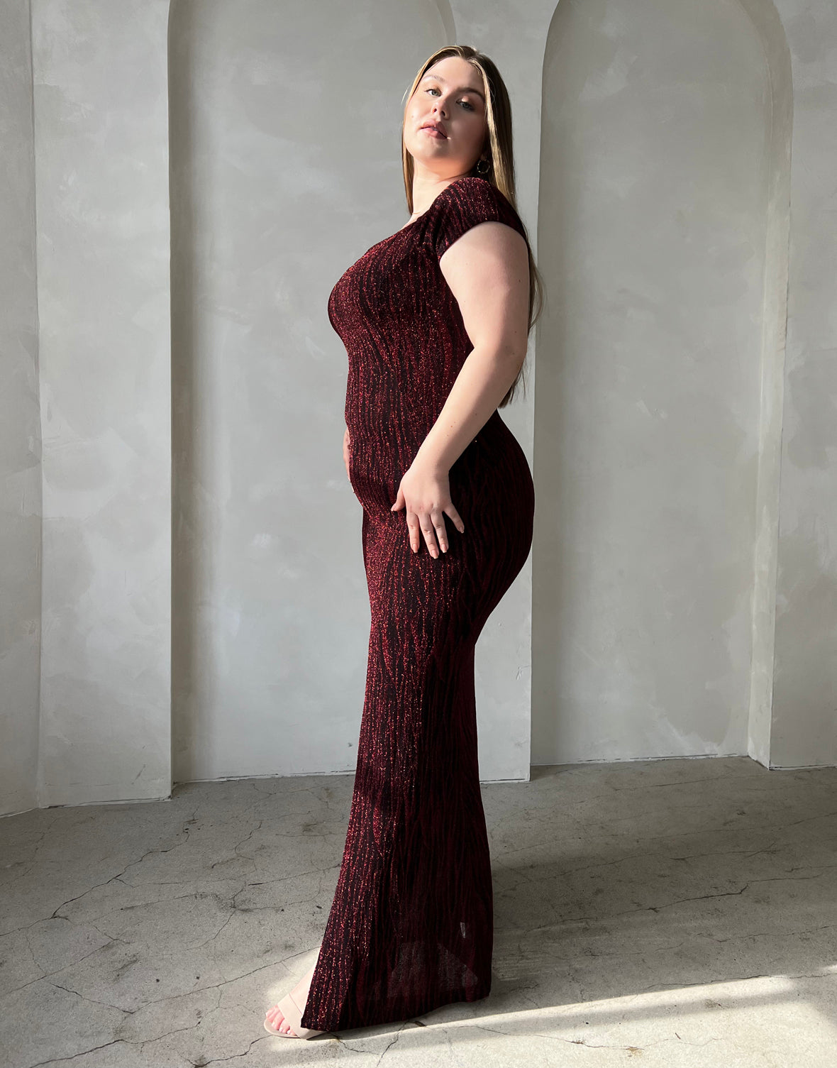 Feminine?with a?sultry side, we're loving the?Curve Wavy Metallic Maxi Dress.?This stunning plus size maxi dress is a show-stopping outfit all on its own. It's a great dress to wear to show off some pretty or your newest .