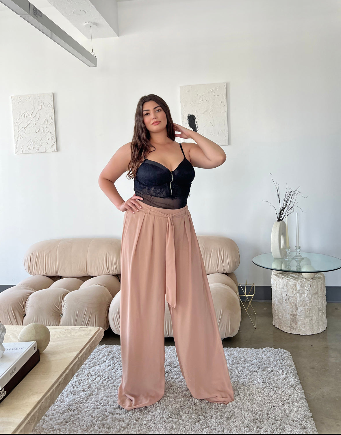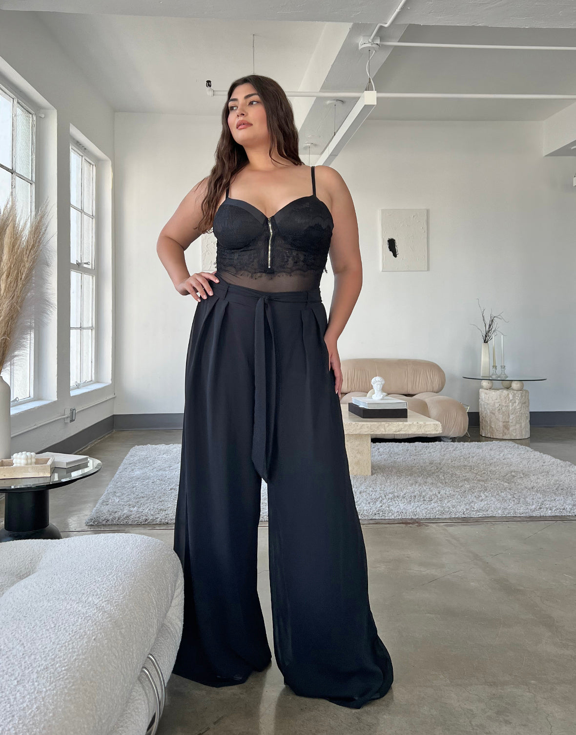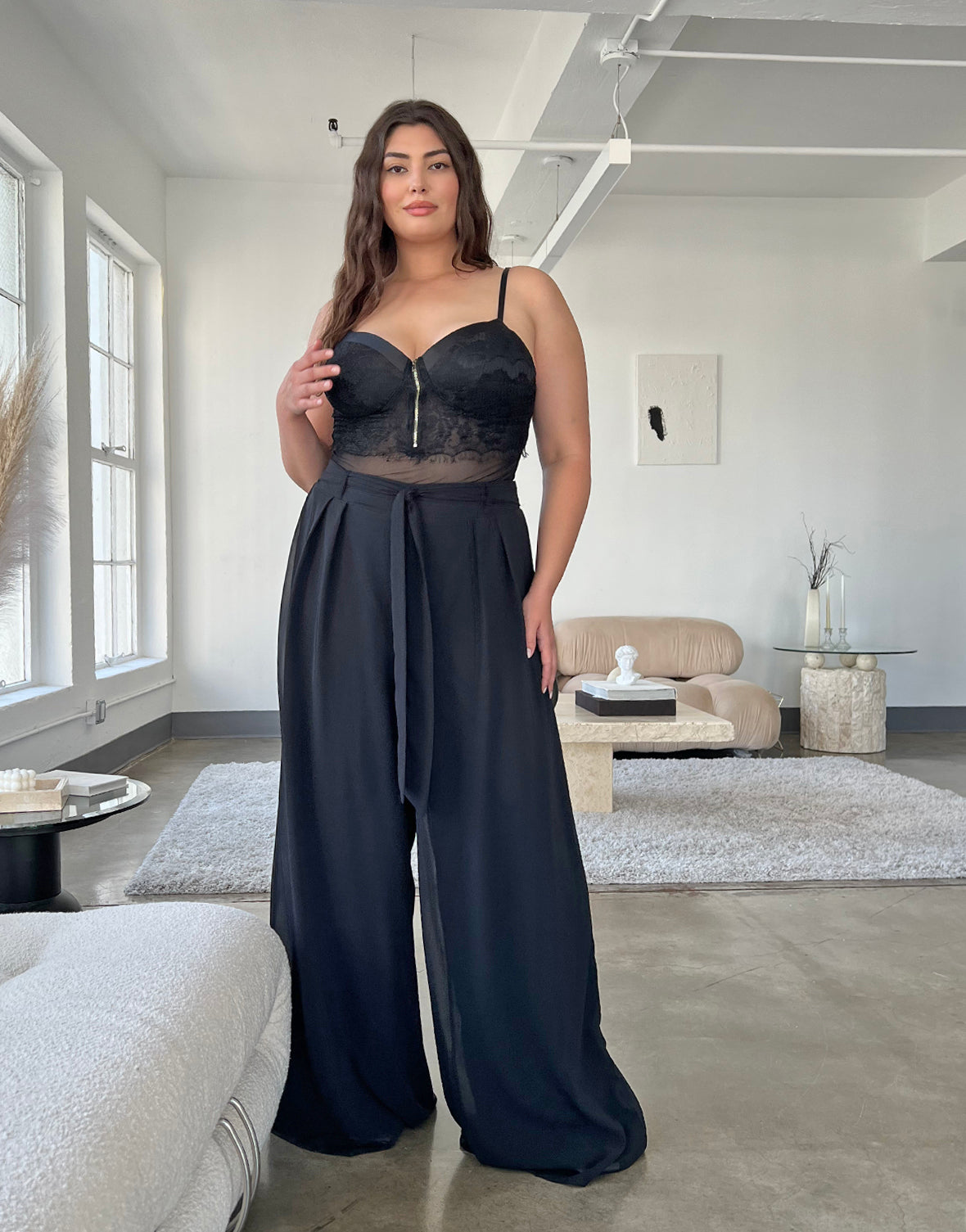 Plus Size Wide Leg Chiffon Pants