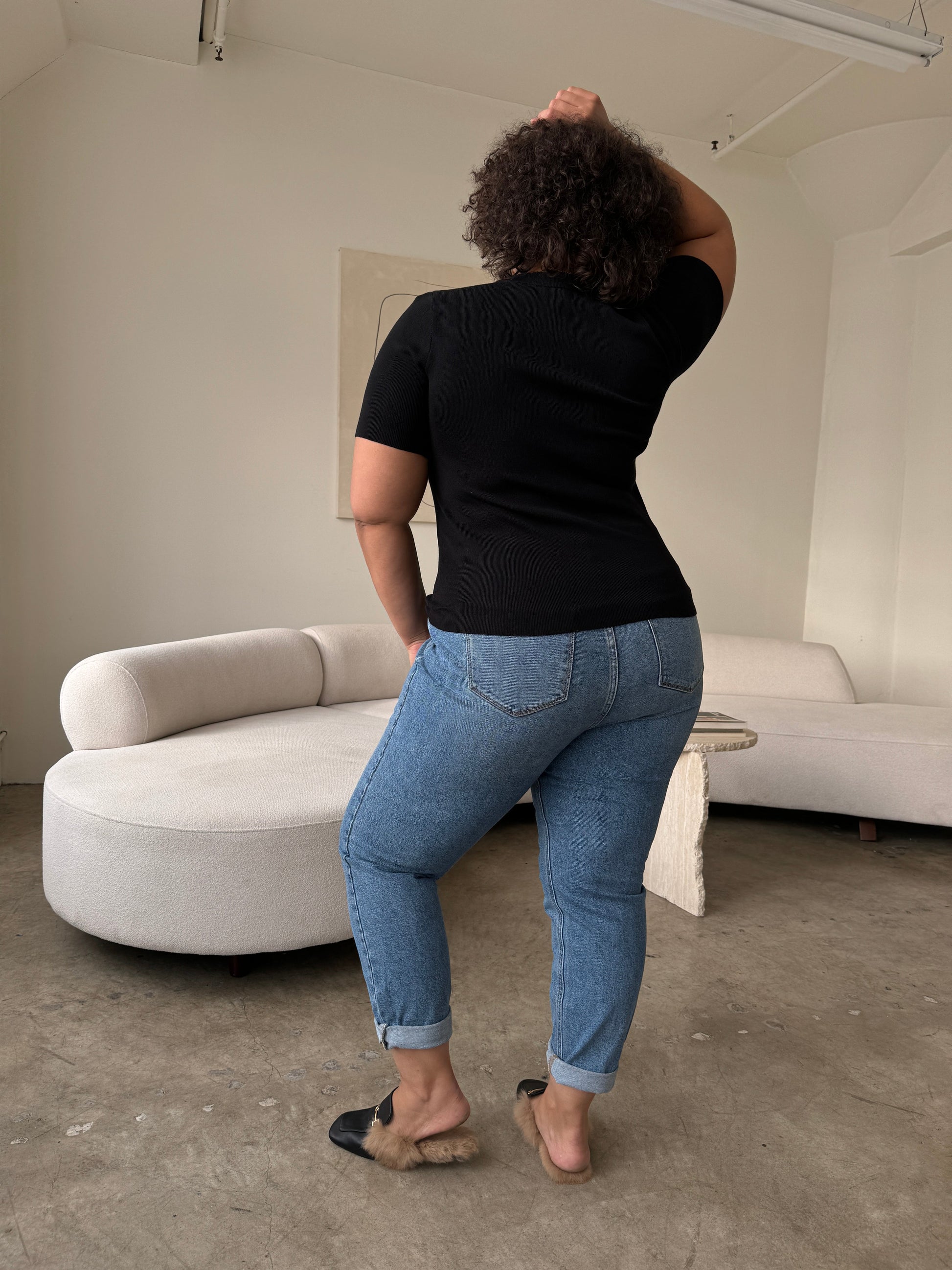 - This tee features a crewneck neckline, short sleeves, a full length, and a body-hugging silhouette.