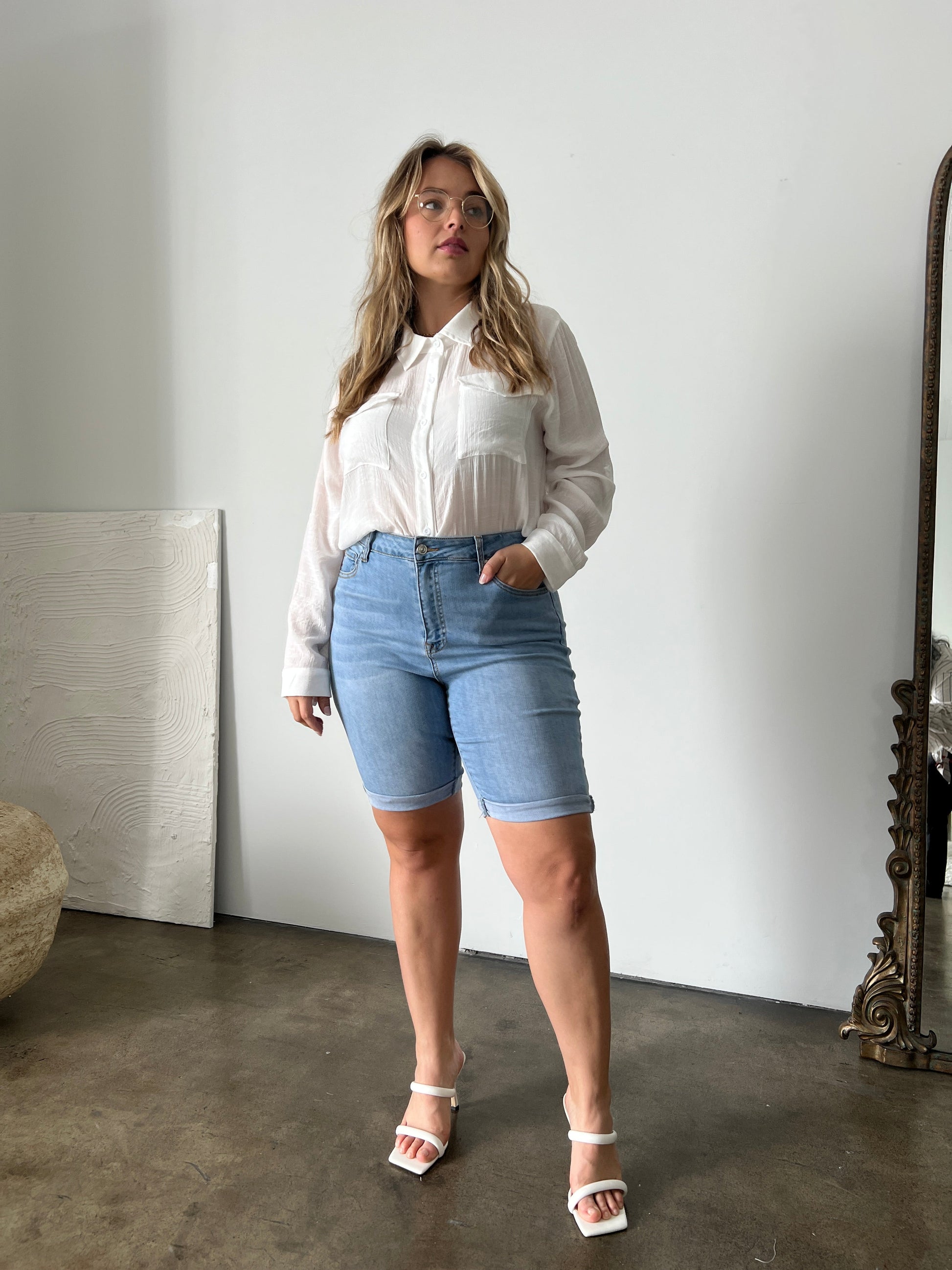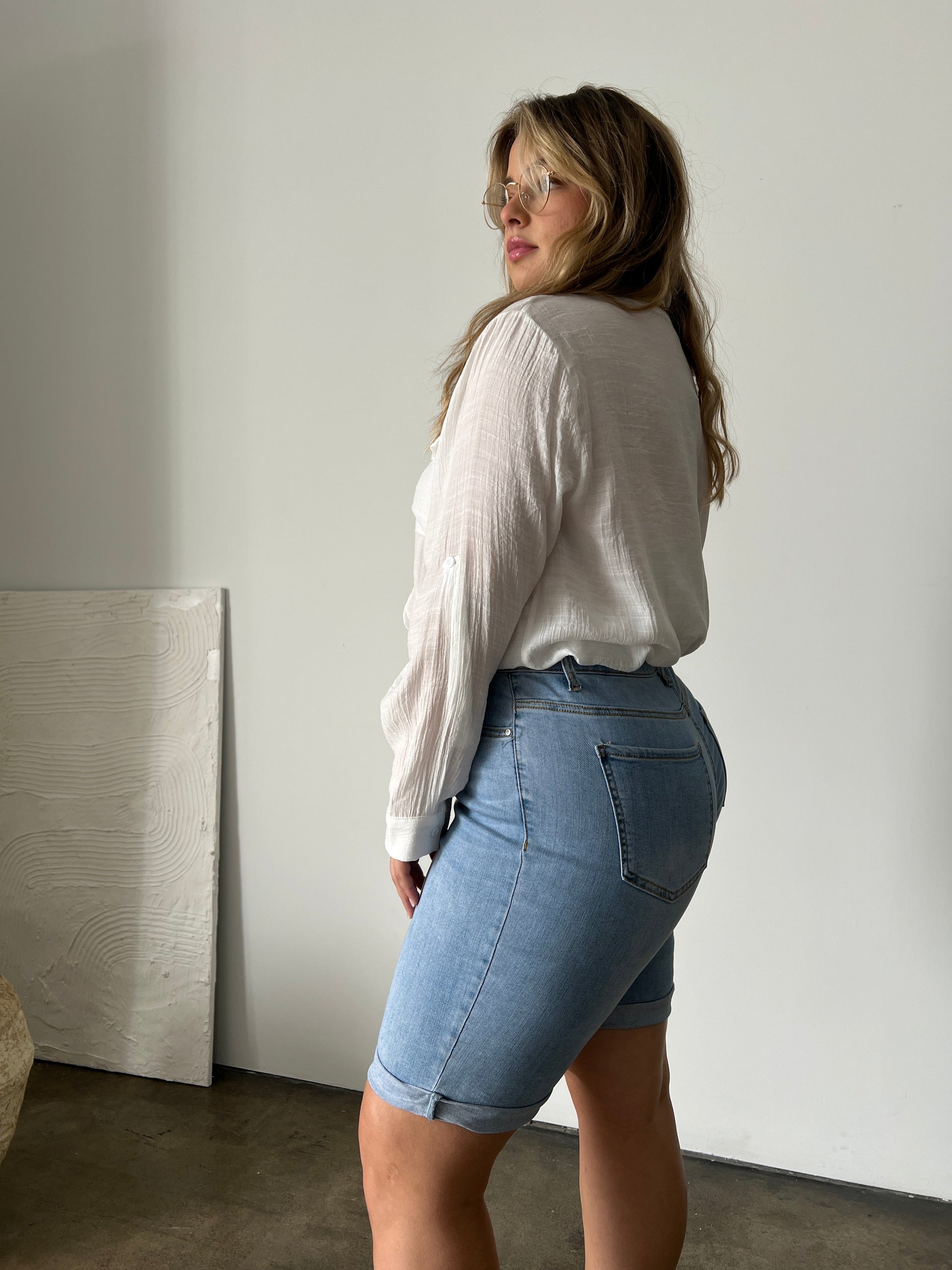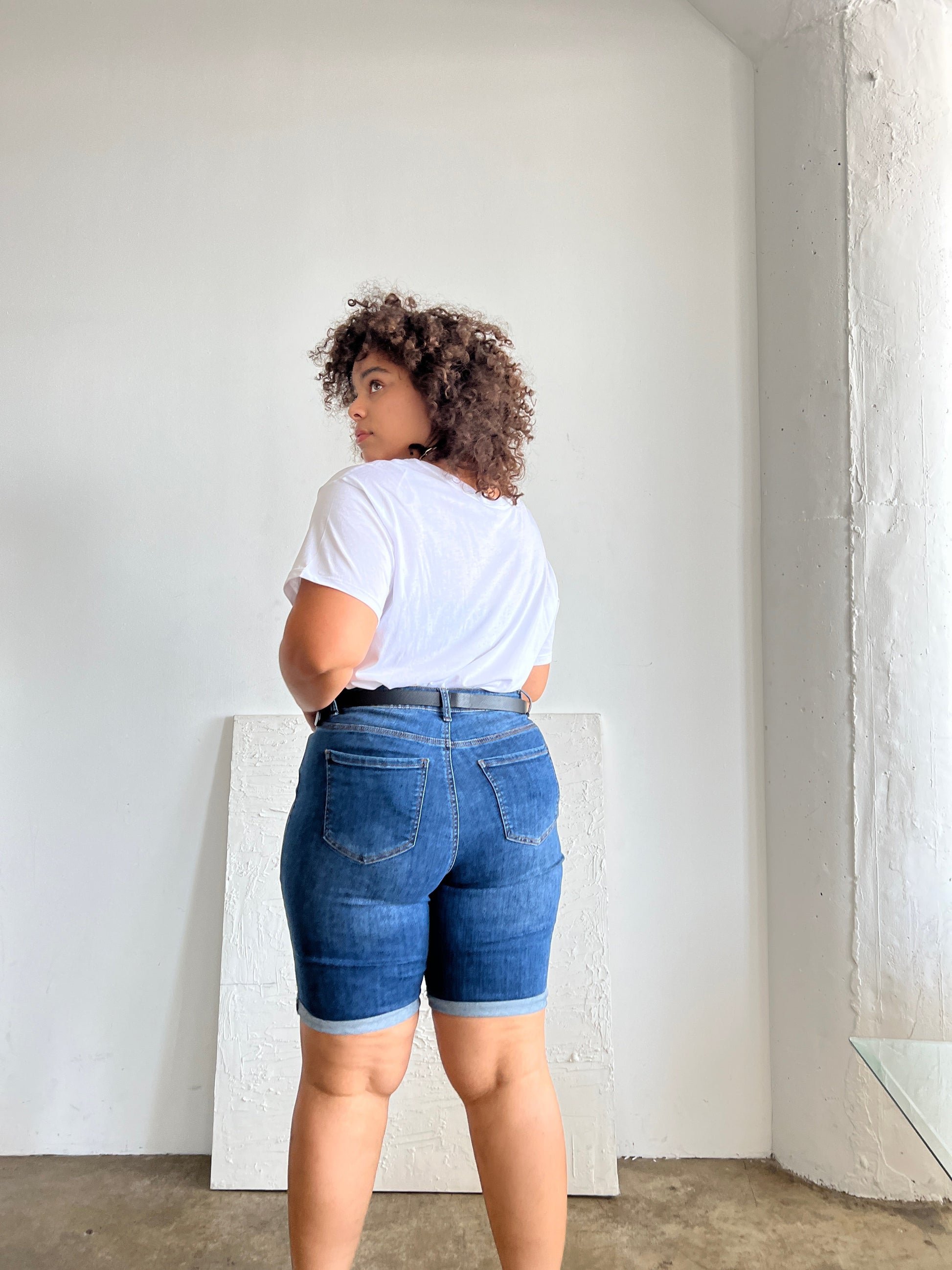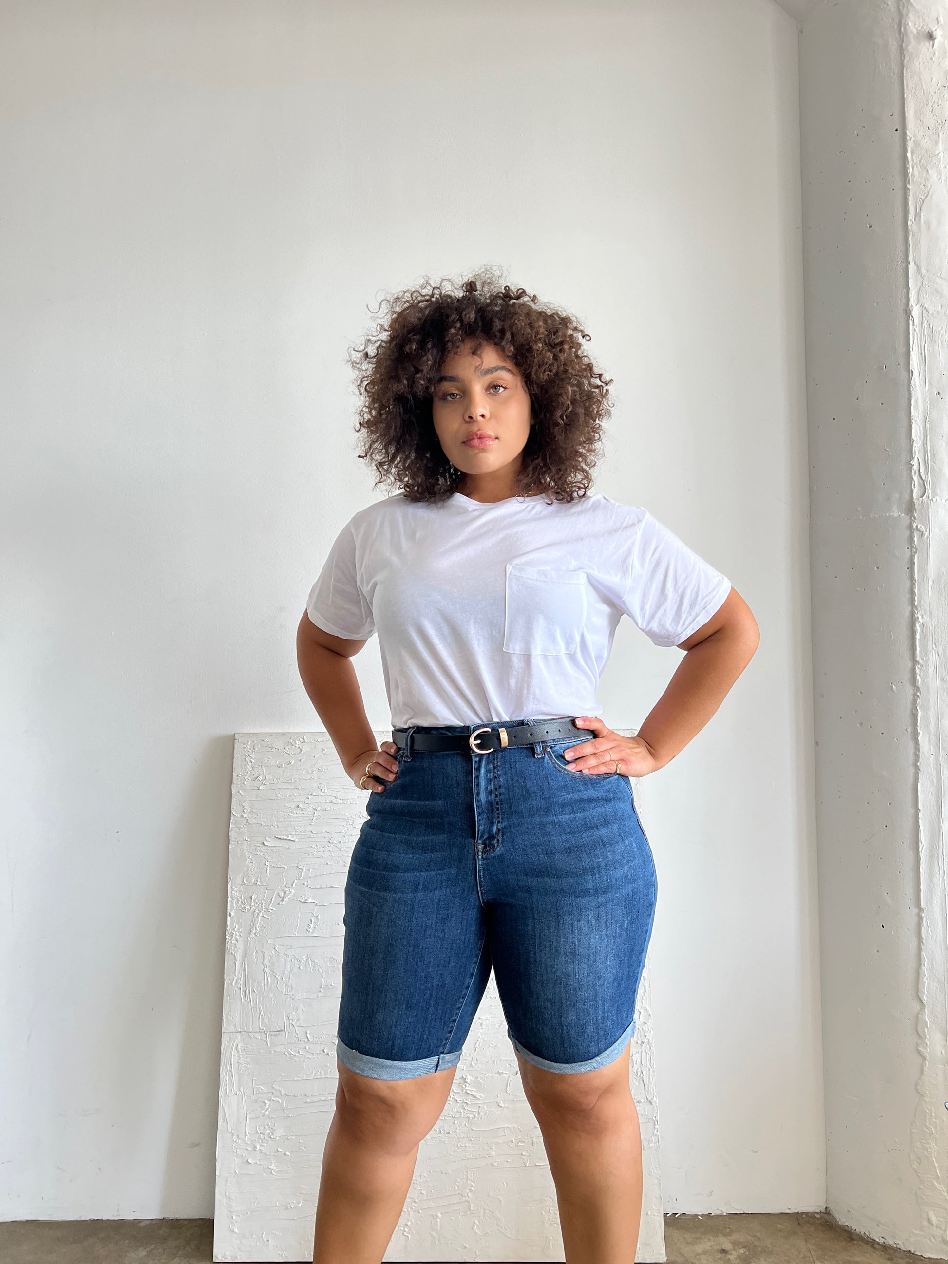 Comfortable and modest, the?Plus Size Cuffed Bermuda Denim Shorts are easy to throw on with?a??or??for a casual outfit. Grab your favorite sneakers and a cute tote and you'll be ready to head to the beach or run some errands.