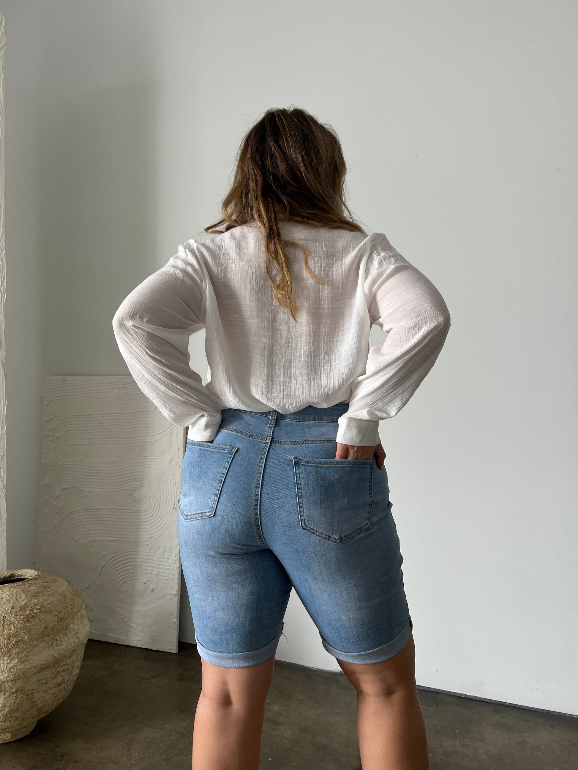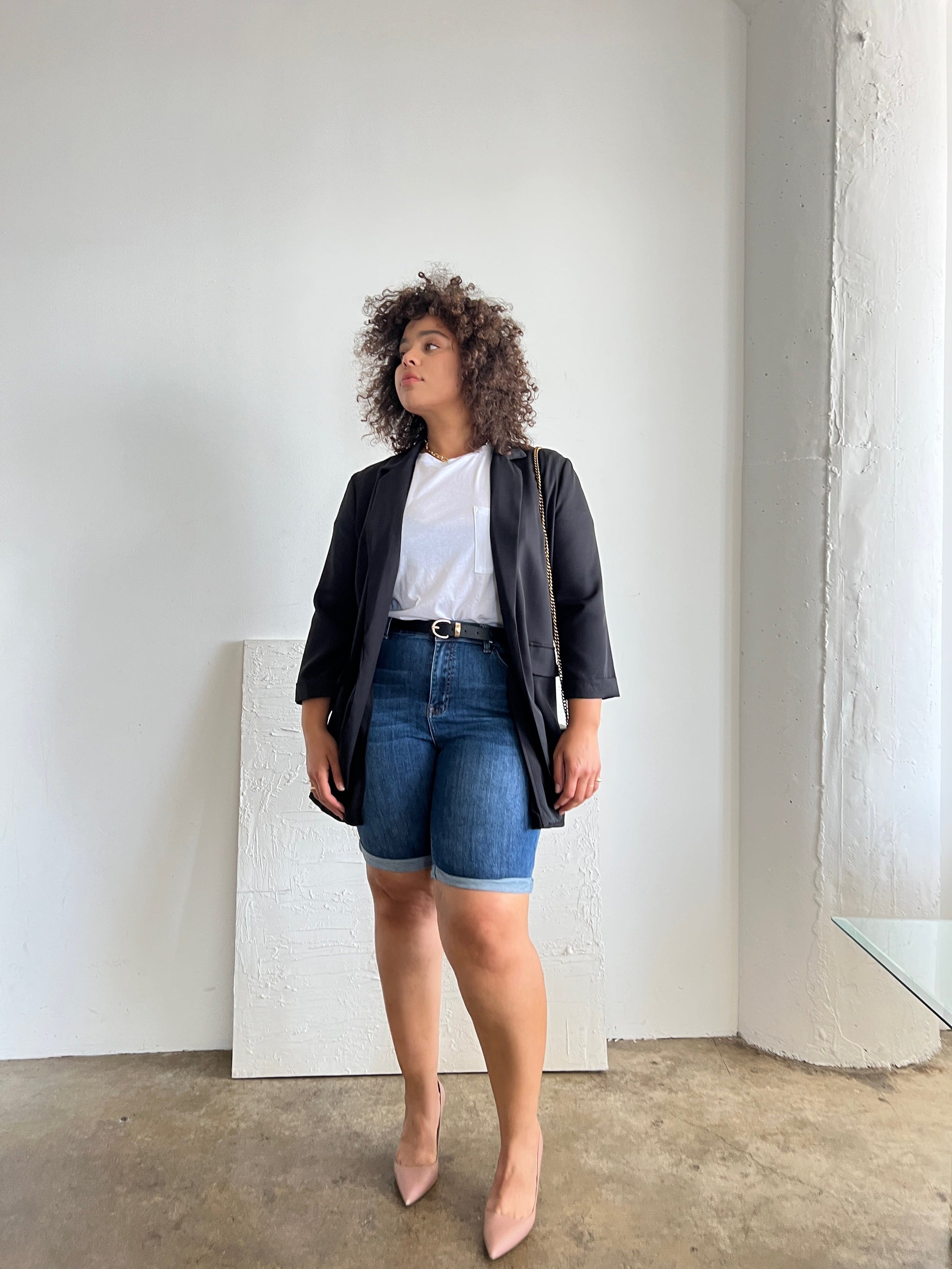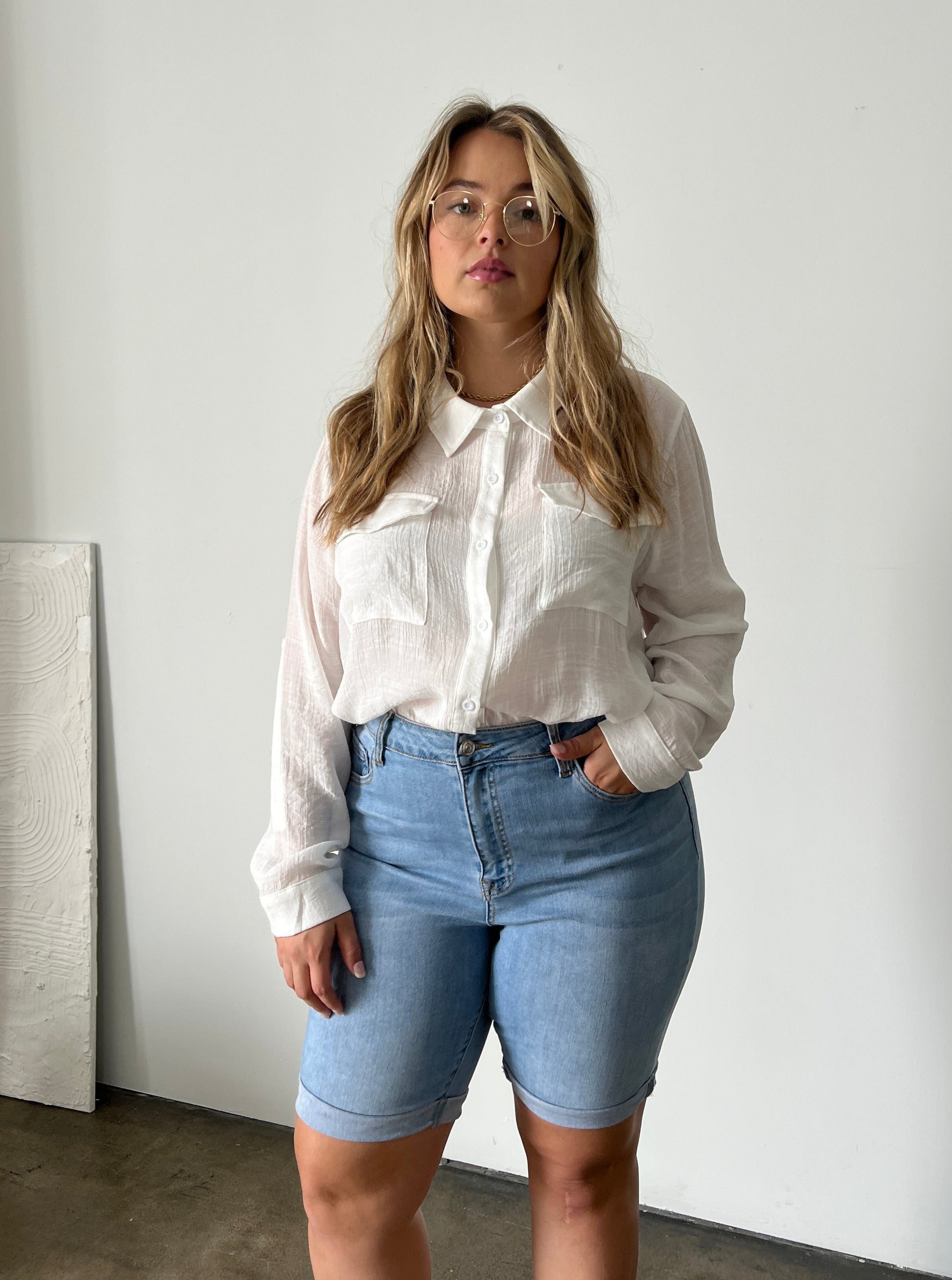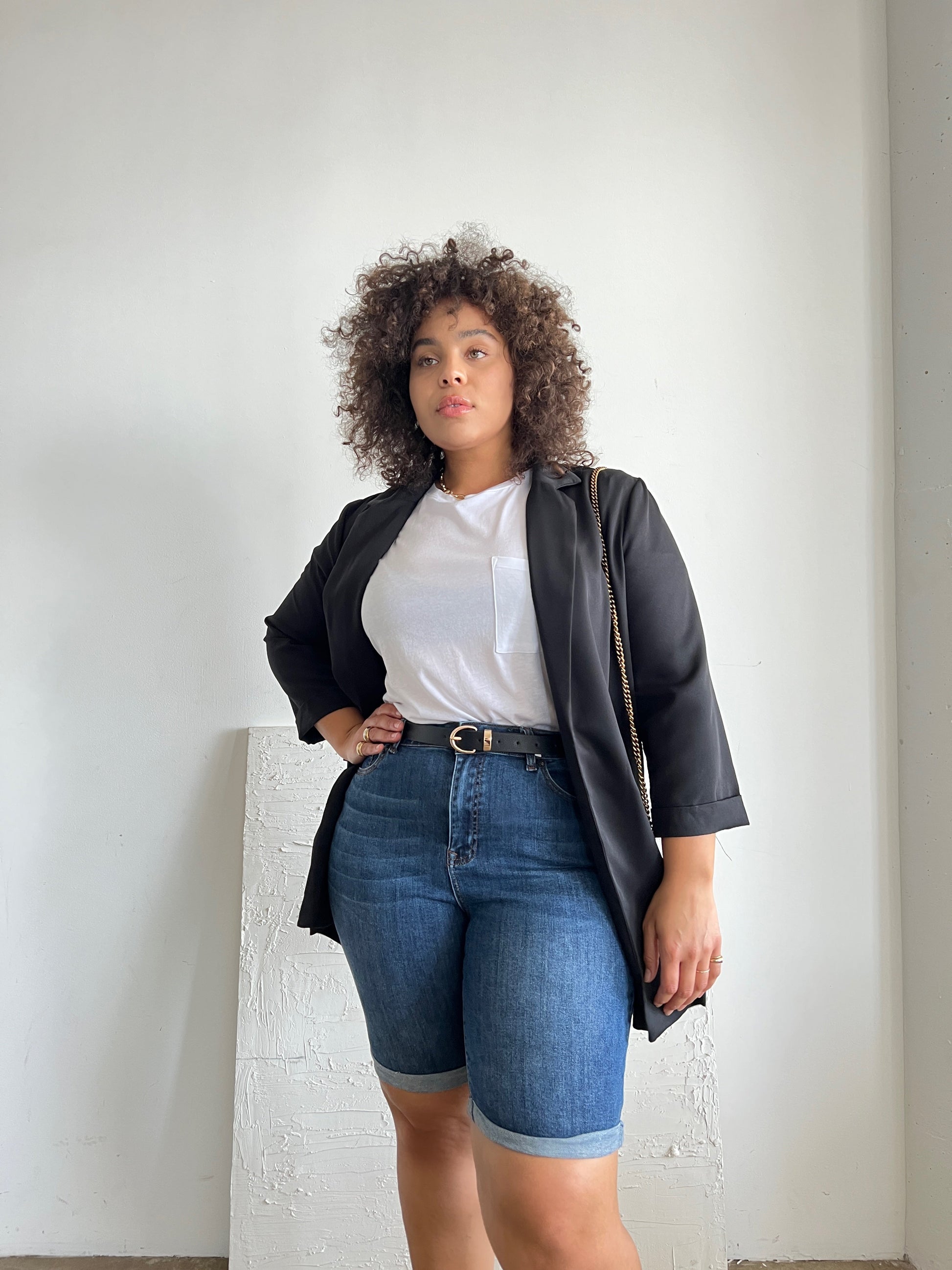 Comfortable and modest, the?Plus Size Cuffed Bermuda Denim Shorts are easy to throw on with?a??or??for a casual outfit. Grab your favorite sneakers and a cute tote and you'll be ready to head to the beach or run some errands.