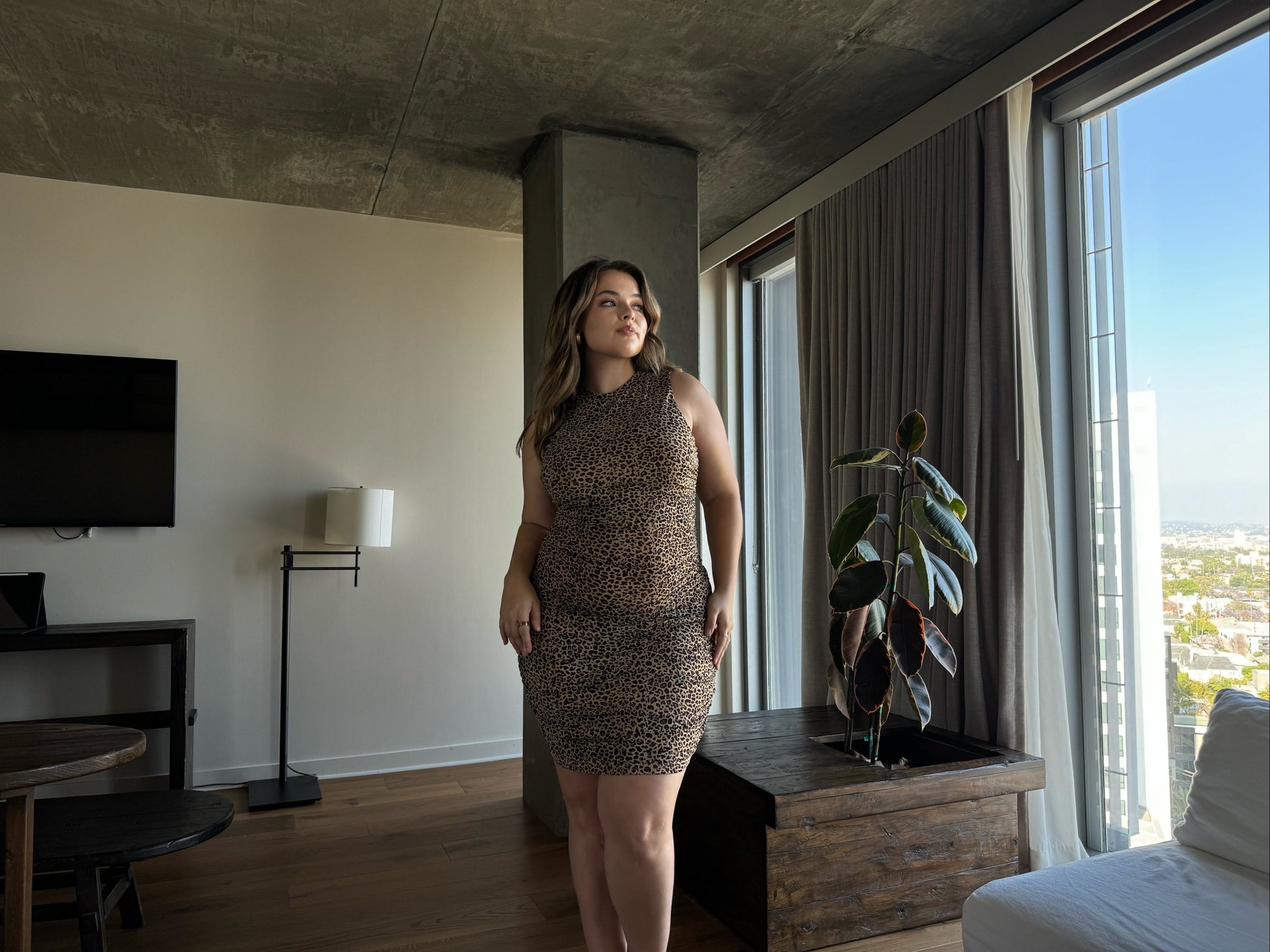 Lots of stretch. Zipper in the back. Glitter/sparkly