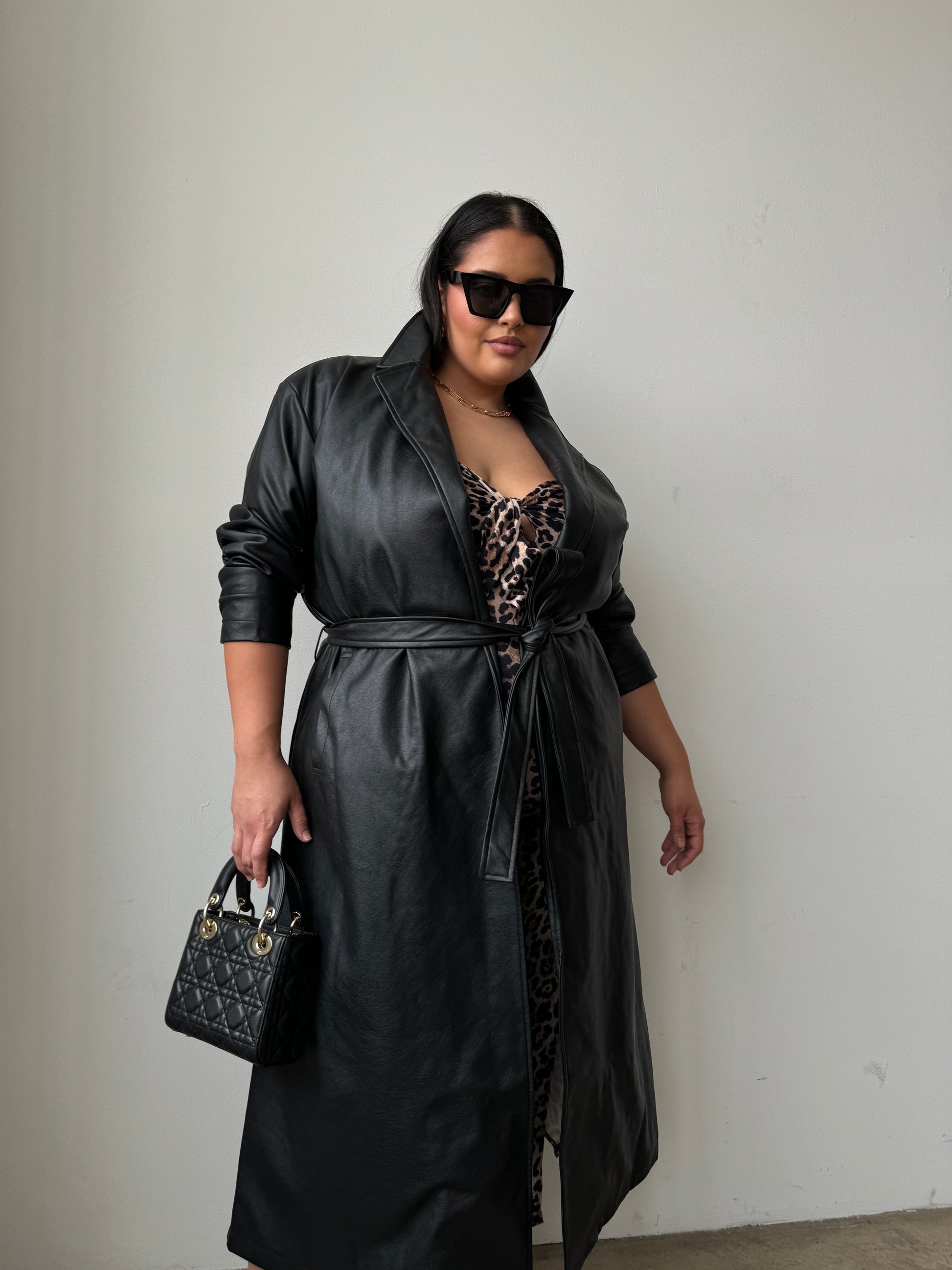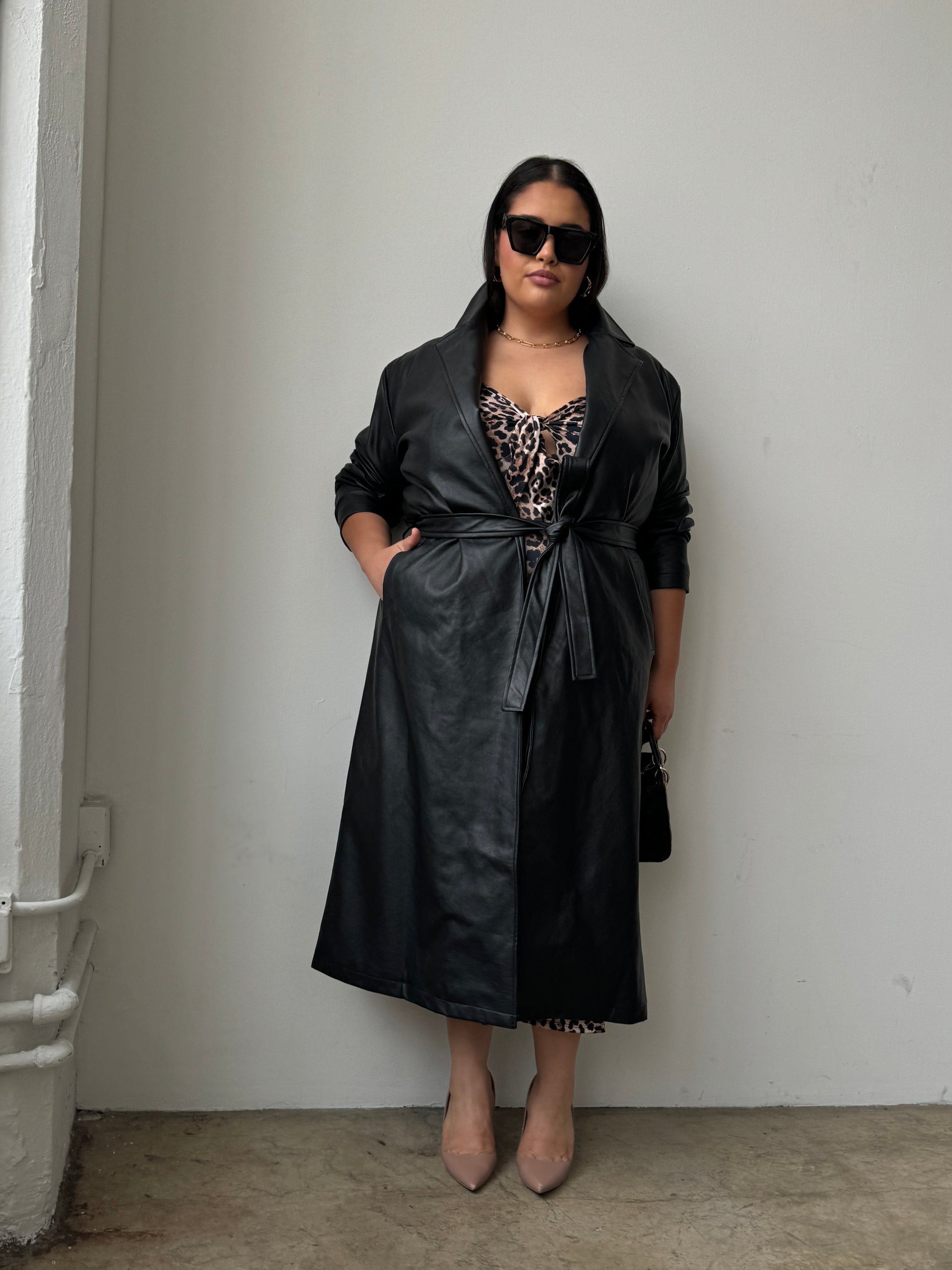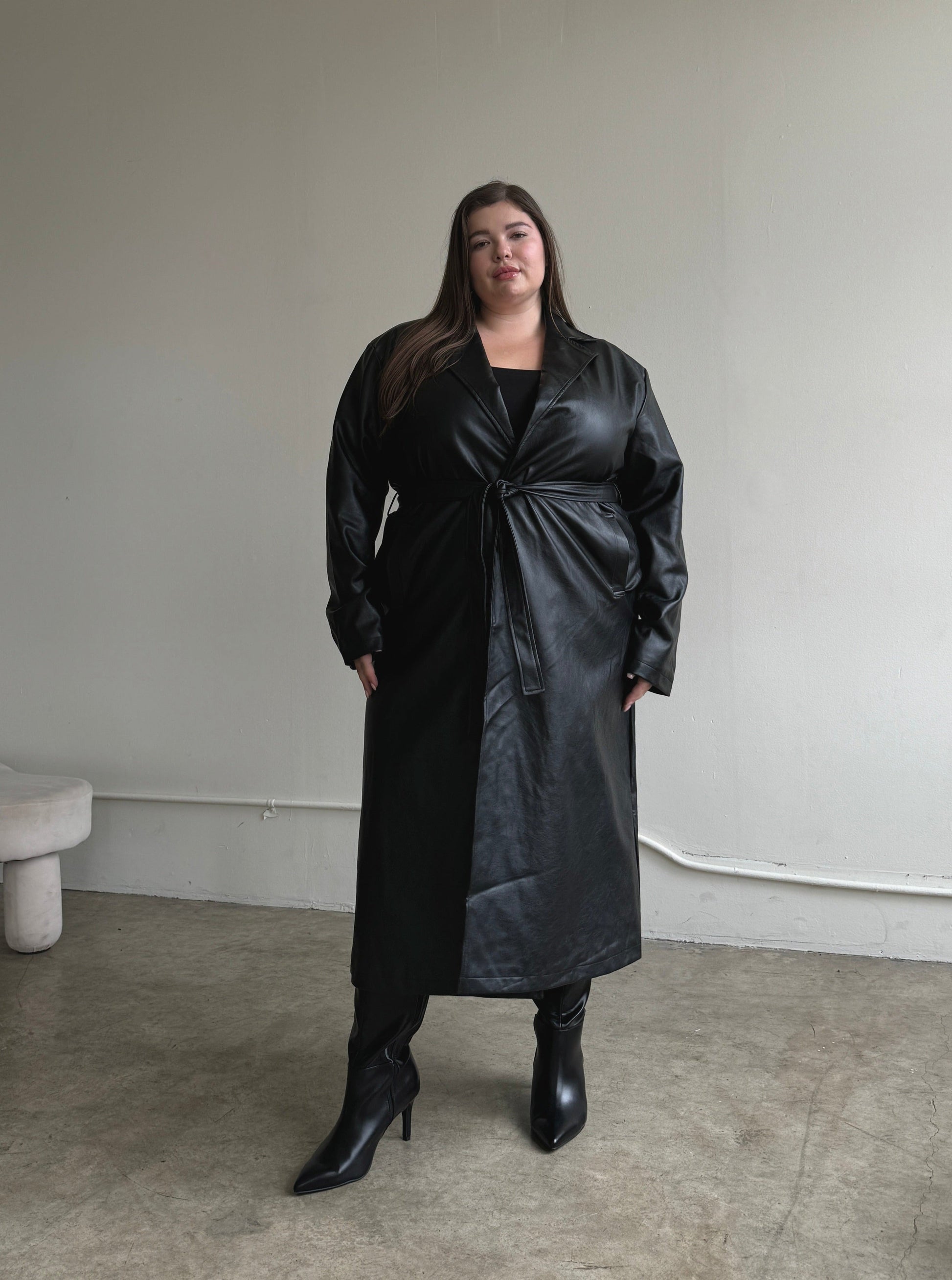 Plus Size Faux Leather Trench Coat