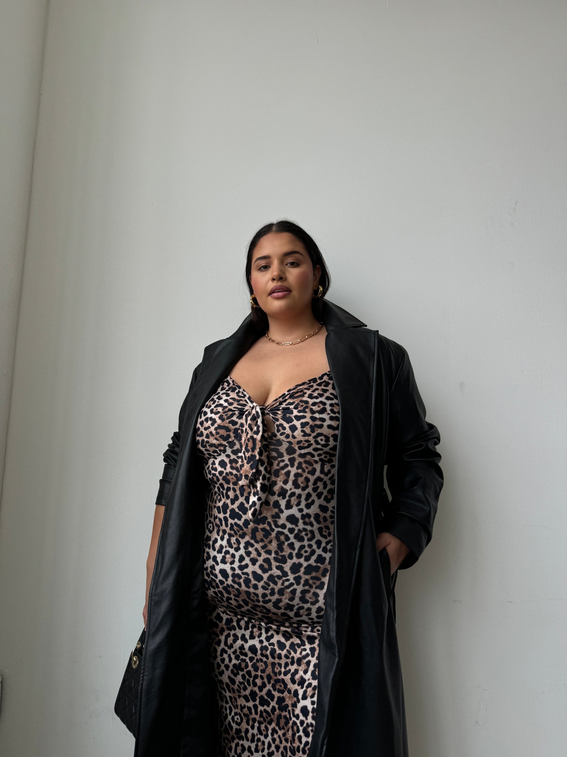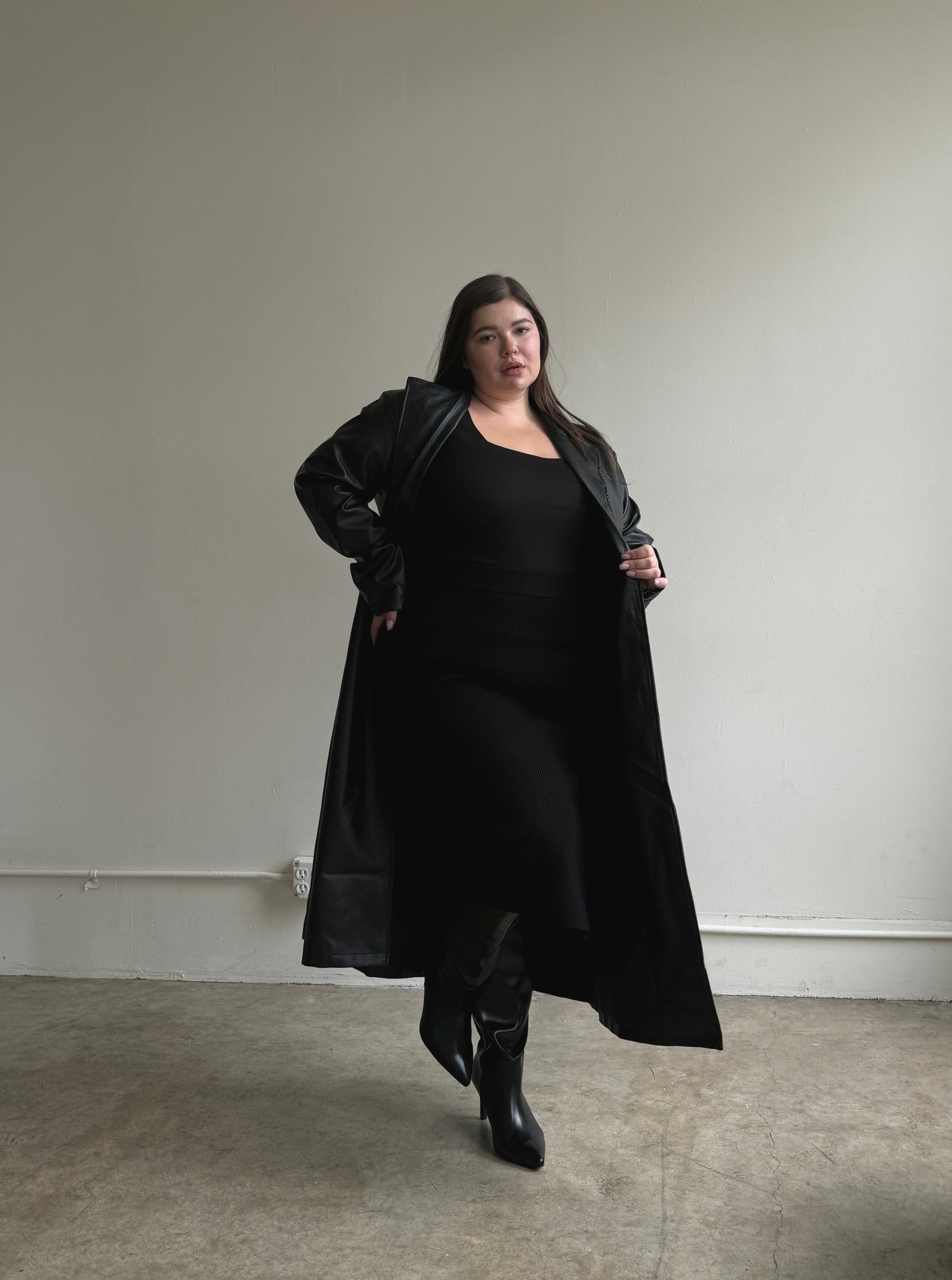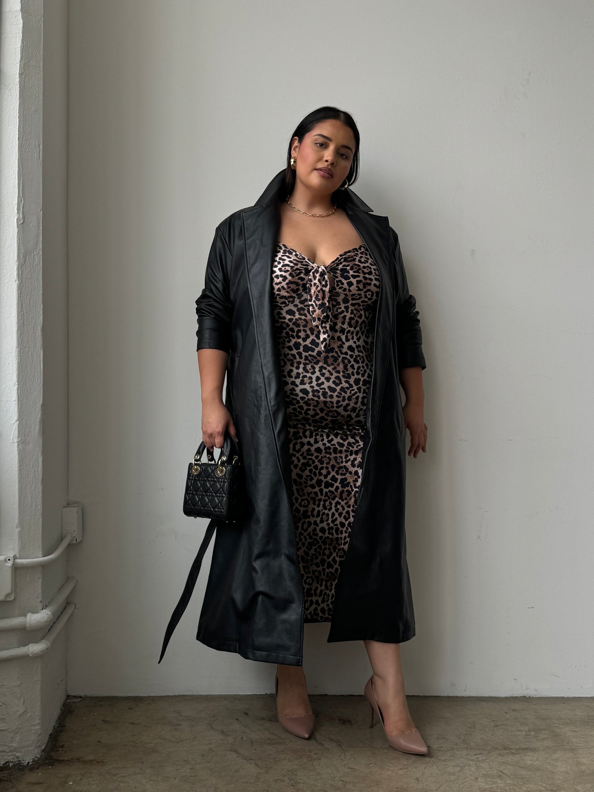Plus Size Faux Leather Trench Coat
