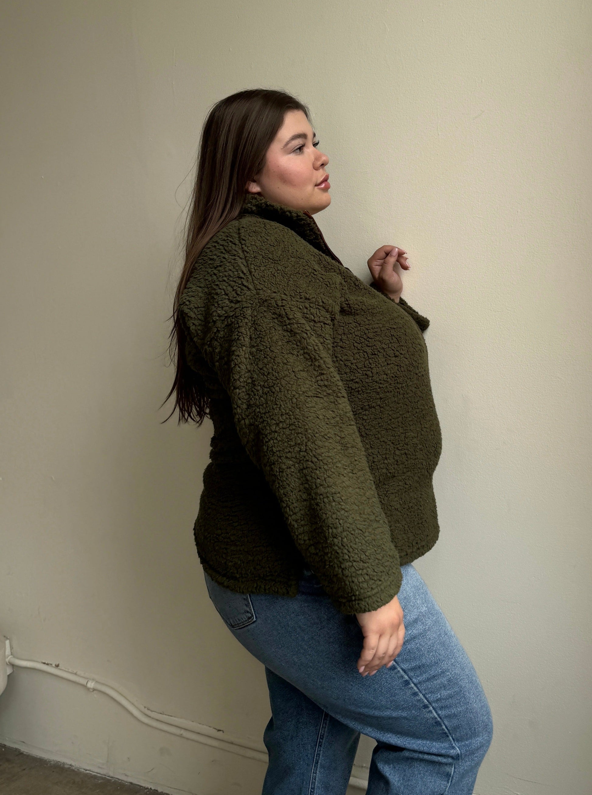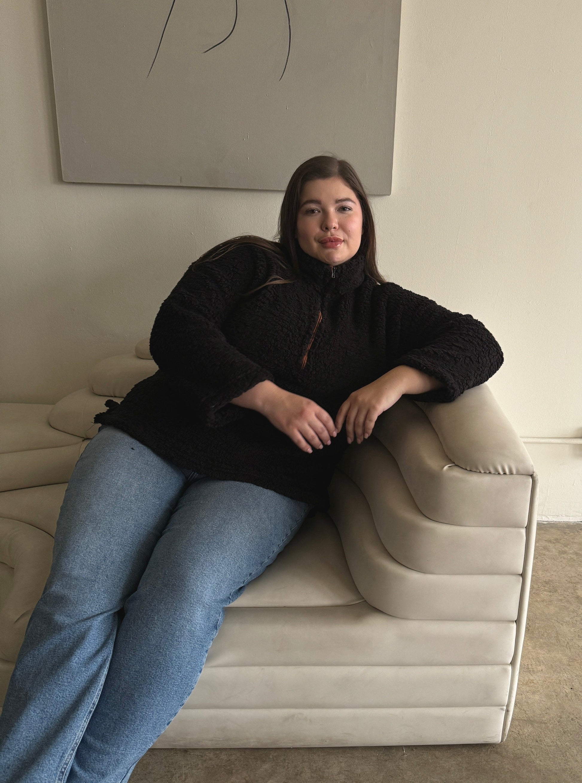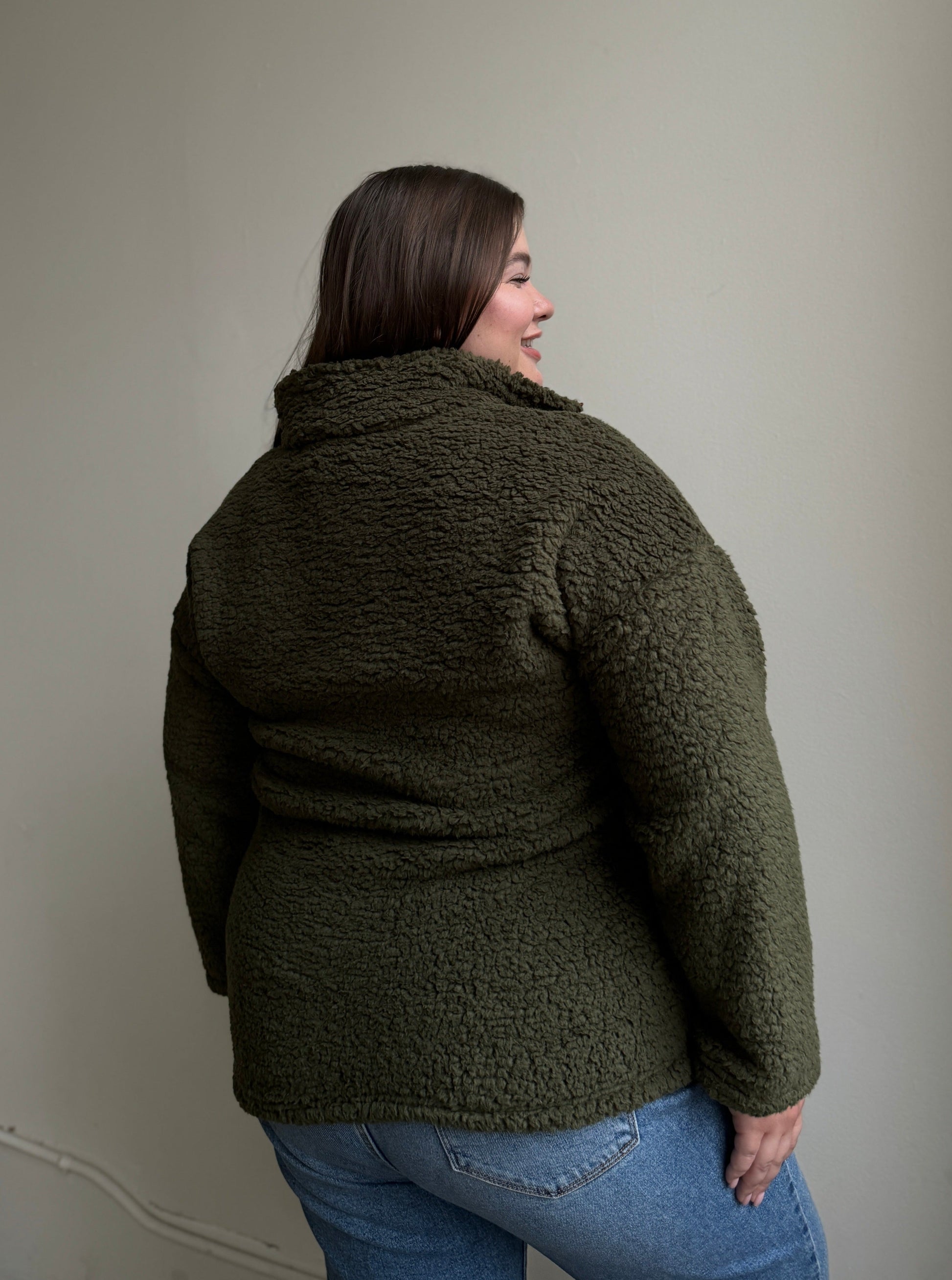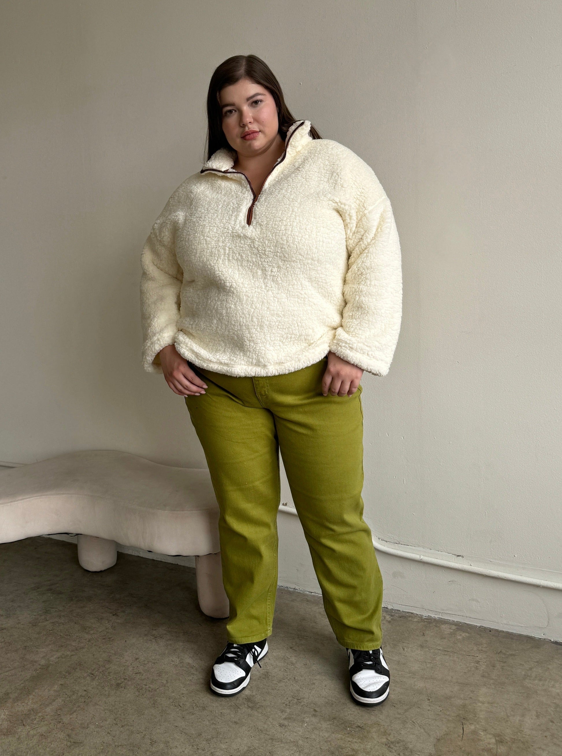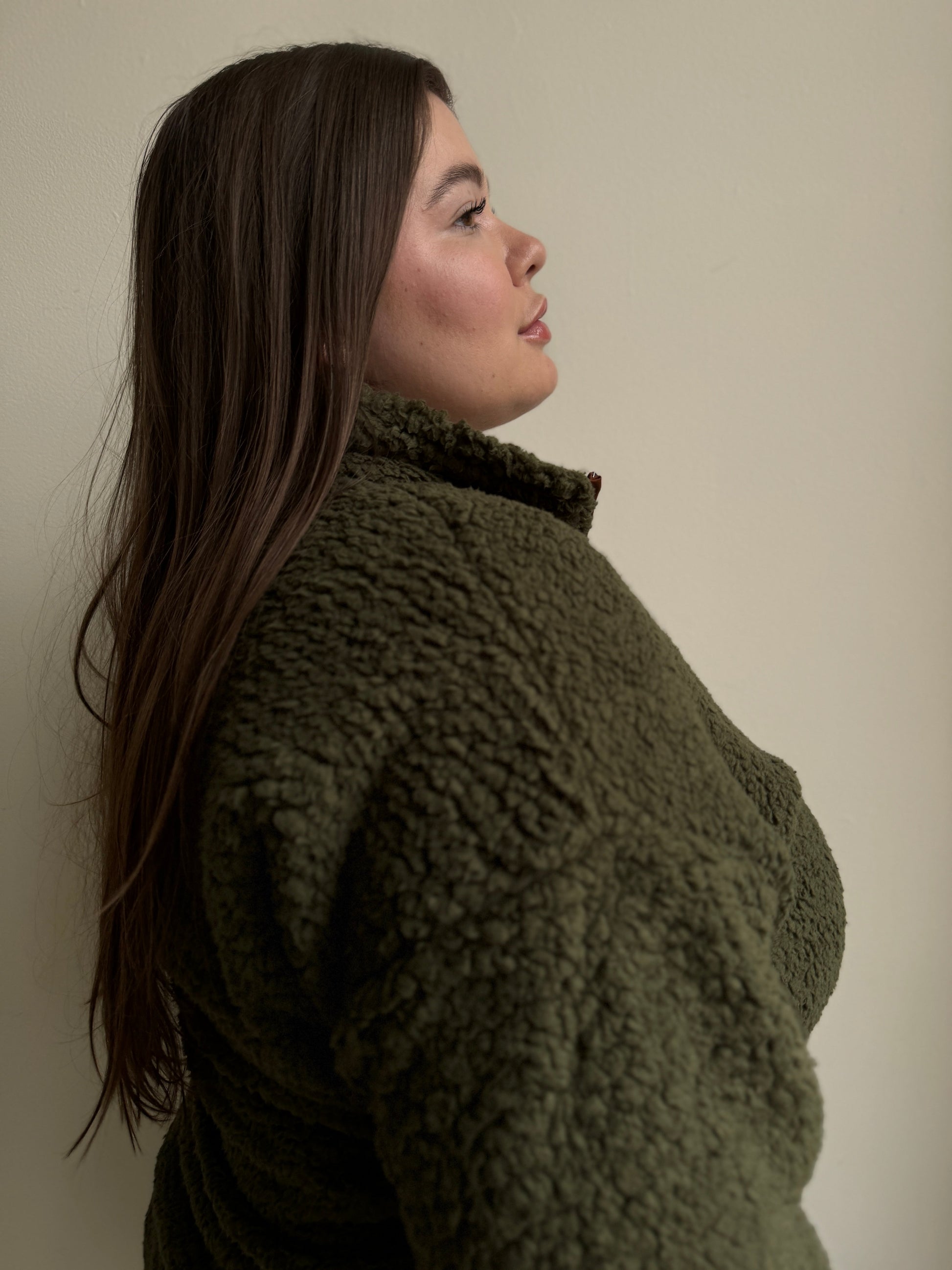 Stay stylishly cozy in the Plus Size Half Zip Teddy Pullover. Luxuriously soft and lightweight, this top features a brown lining on the zipper and collar to elevate the look of this chic design. Relaxed and oversized, this is the perfect layer for any cold-weather wardrobe! Throw it on with your favorite for a comfy loungewear look.
