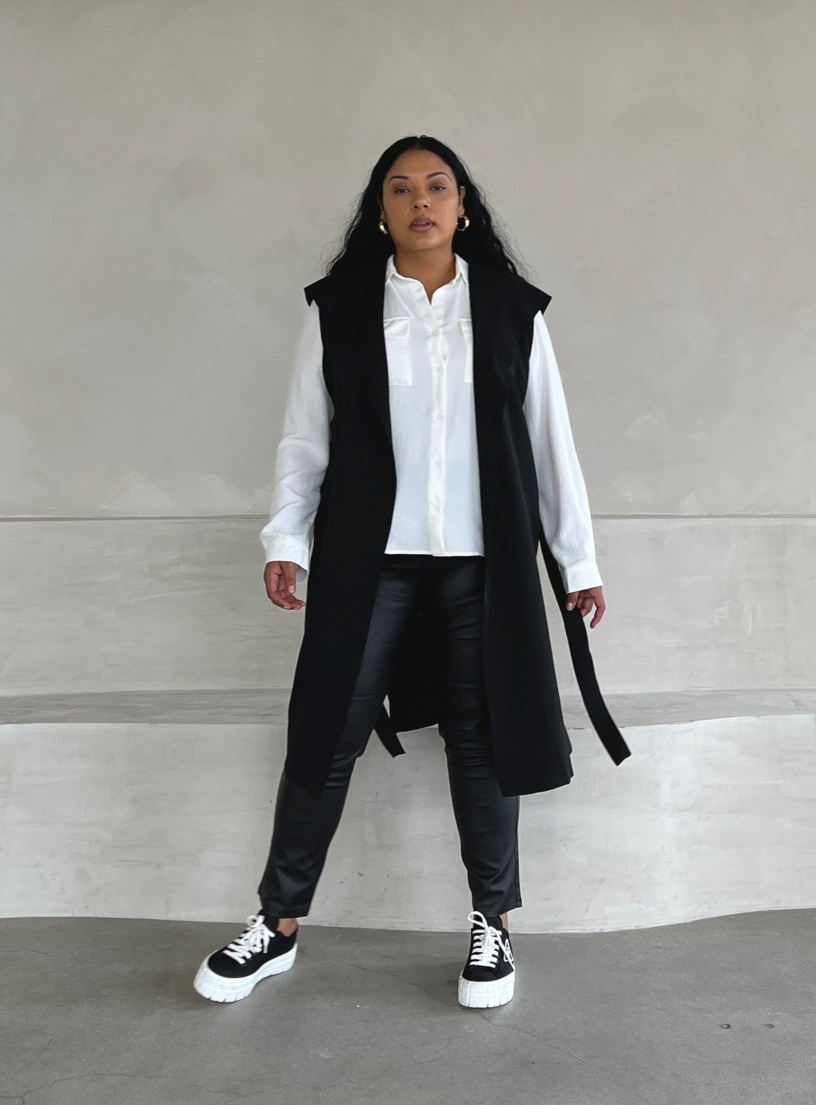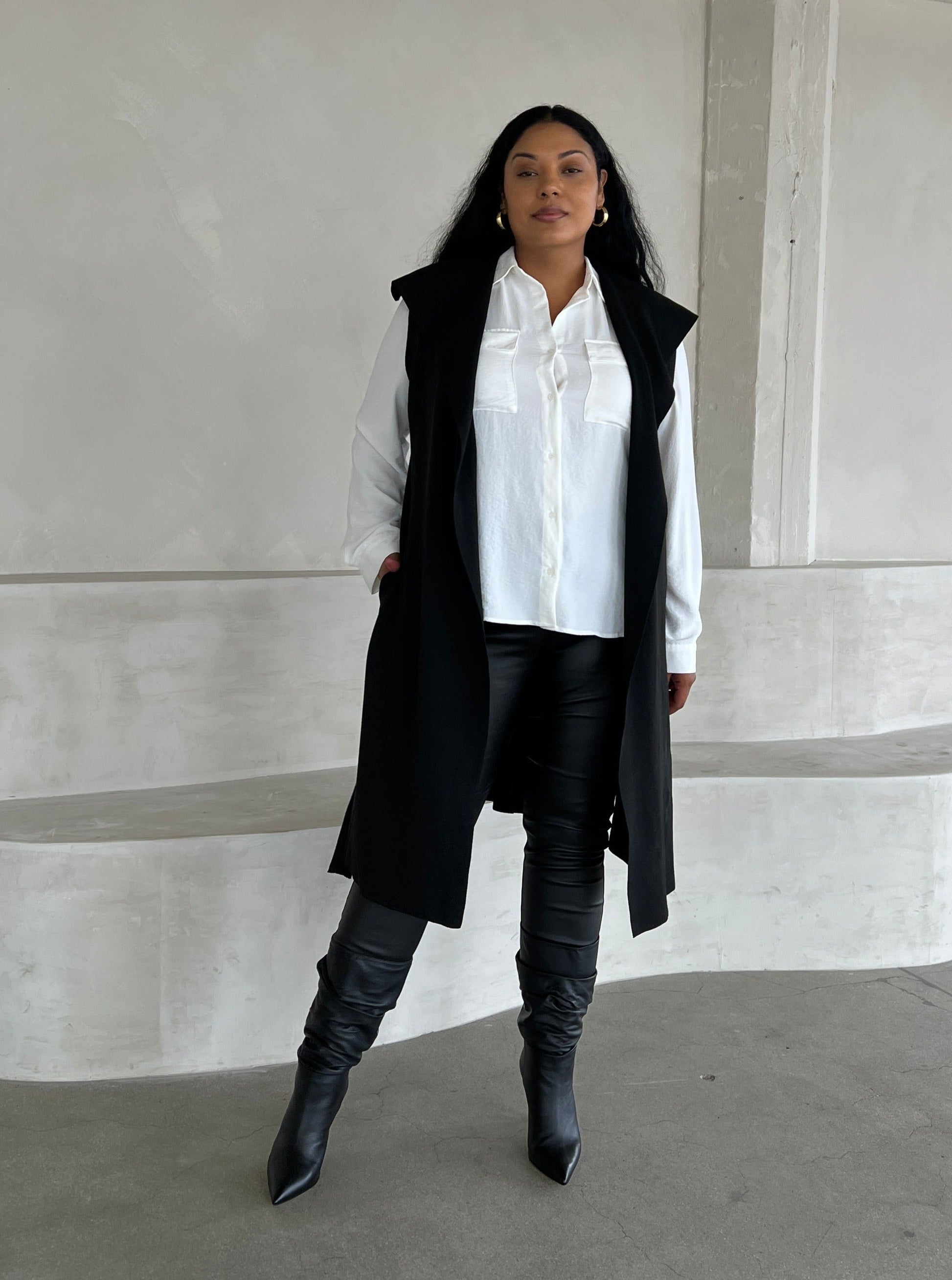 Plus Size Long Knit Belted Sleeveless Cardigan